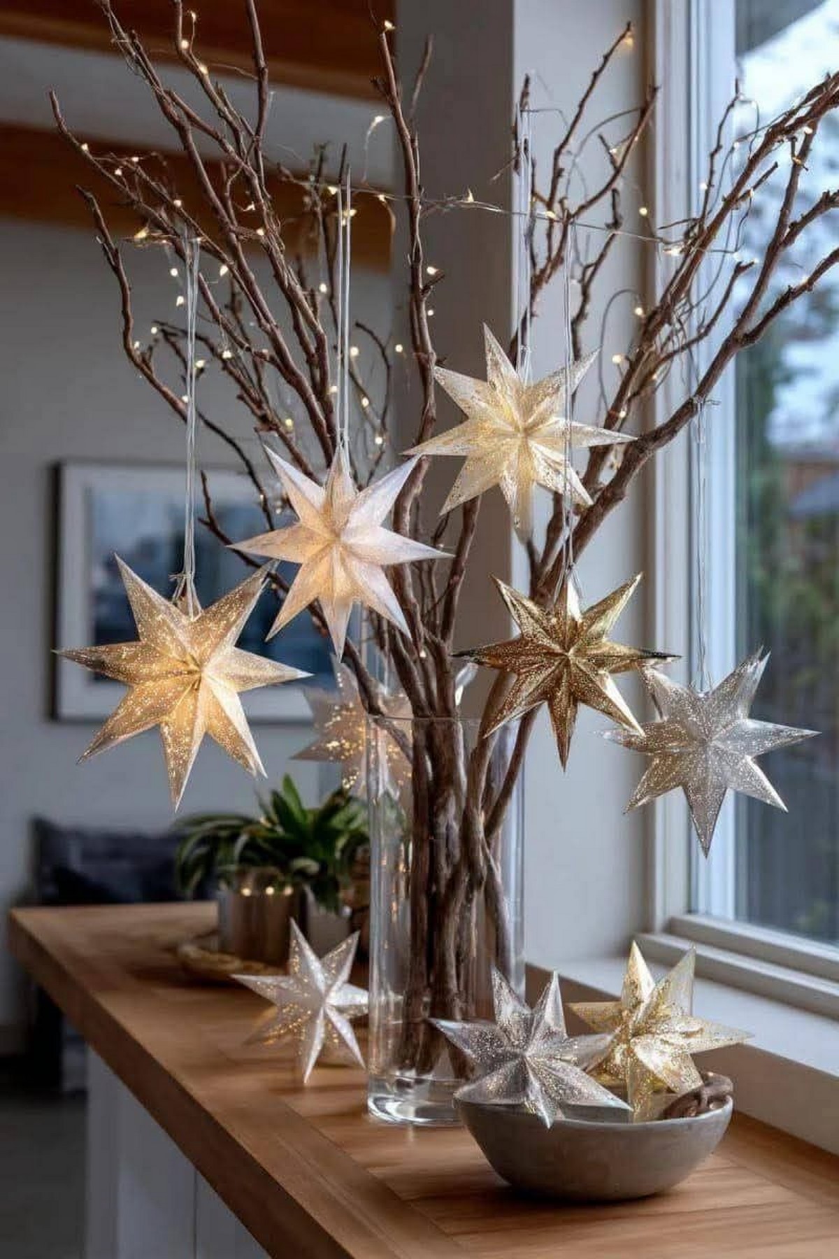 - Еще одним ответом, как украсить дом на Новый год 2026, будет украшение карнизов гирляндами, а также других небольших деталей интерьера. Вдоль шторы можно прикрепить красивую бумажную гирлянду из фольги. Такое украшение на Новый год также станет ноткой позитива и хорошего настроения на Новый год 2026.