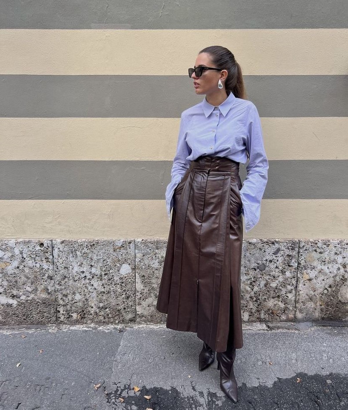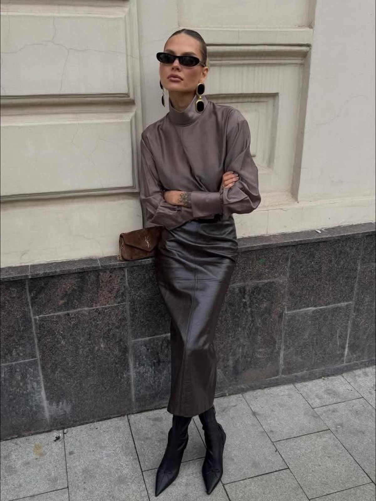 Трендовые юбки из кожи 2025: фото-идеи ультрамодных луков с кожаными юбками
