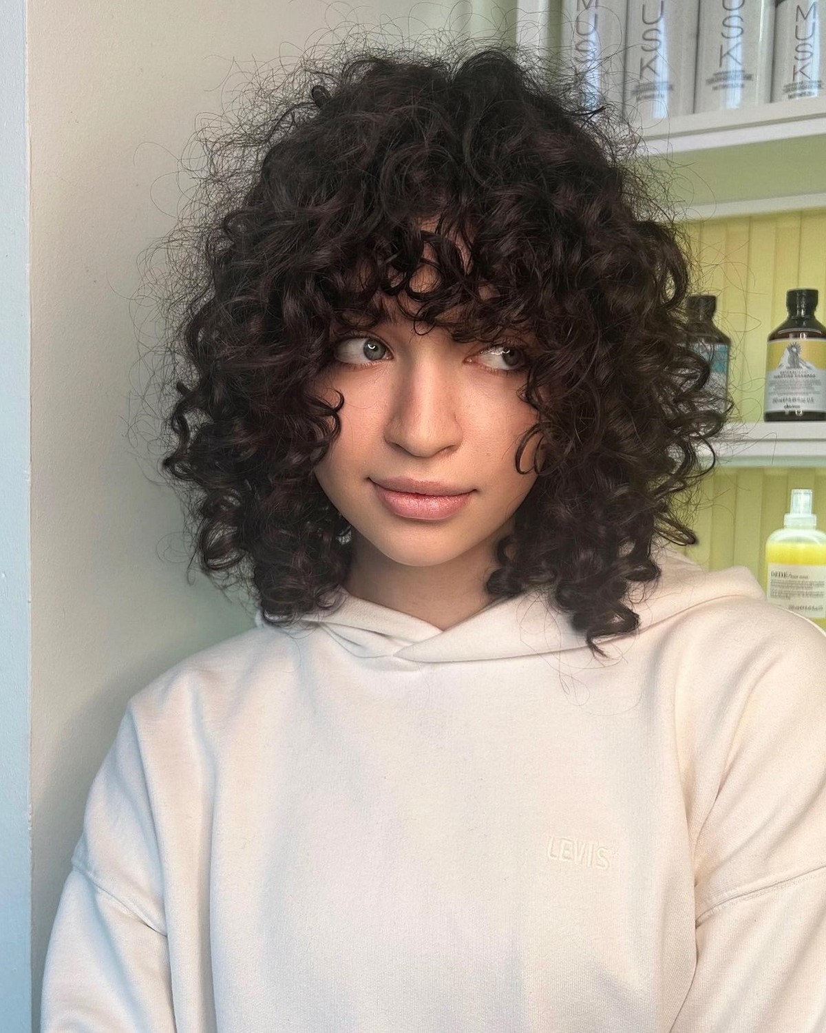 Короткие варианты челки в тандеме с кудрями придутся по вкусу не каждой кудряшке, но такие вариации тоже имеют место быть.