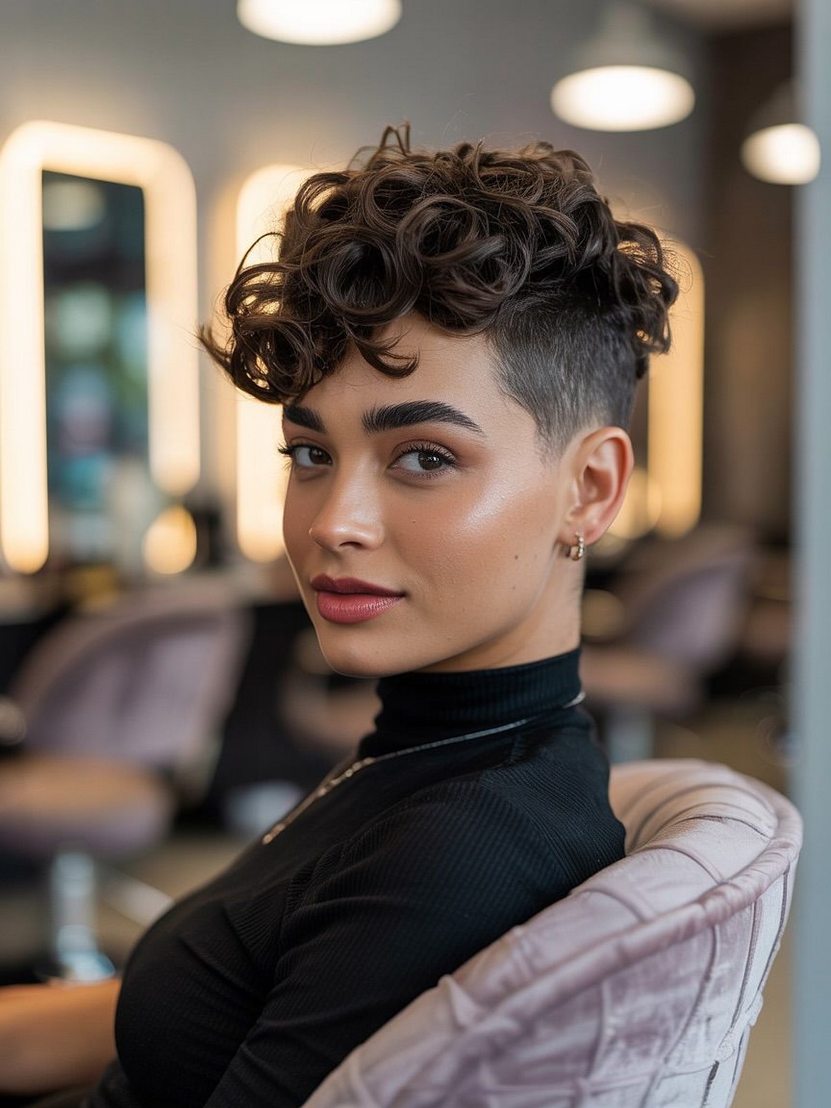 Модный тренд сезона – стрижки на кудрявые волосы с выбритыми висками и затылком