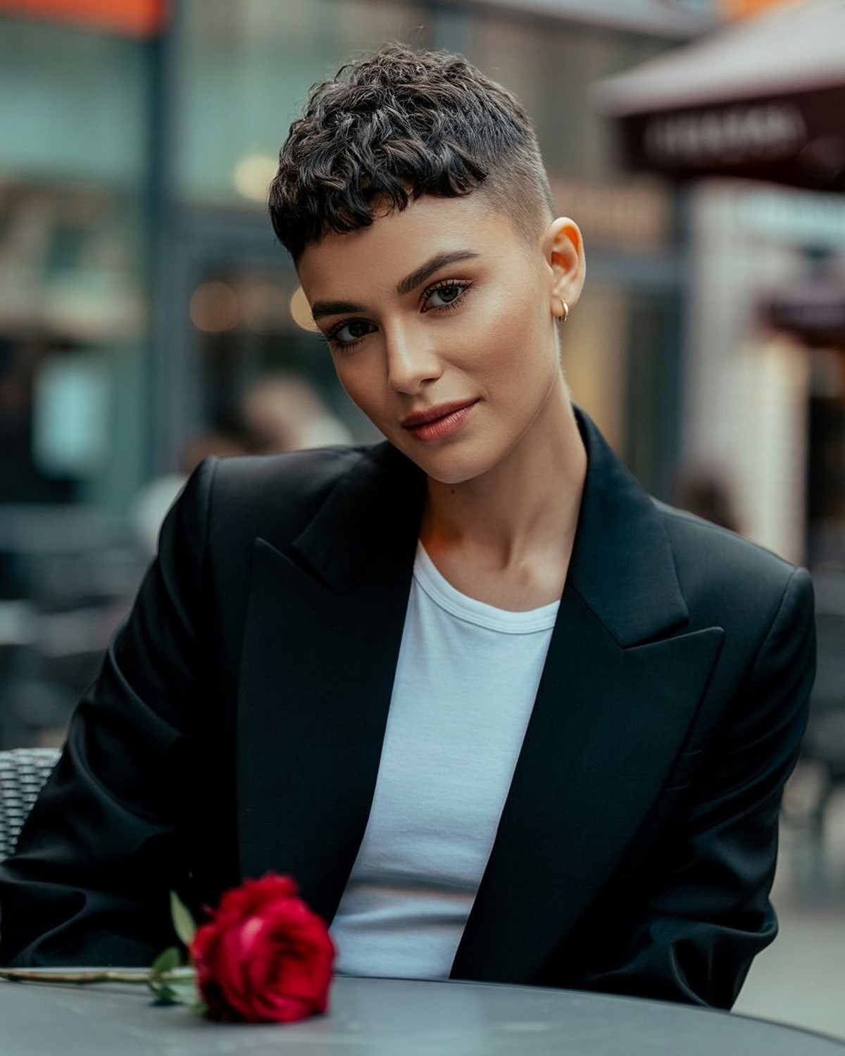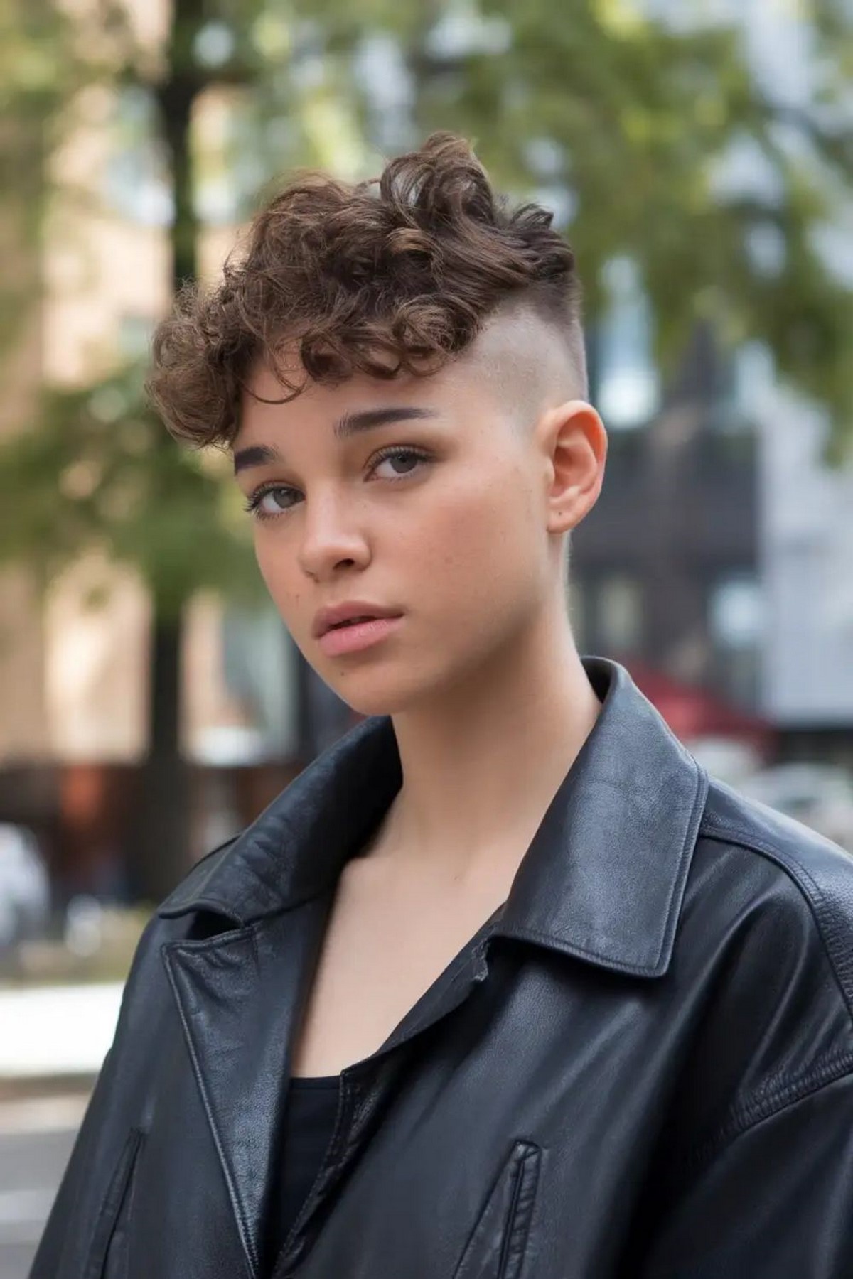 Если вы желаете измениться до неузнаваемости, креативные стрижки на кудрявые волосы с выбритыми частями помогут воплотить вашу задумку как нельзя лучше.