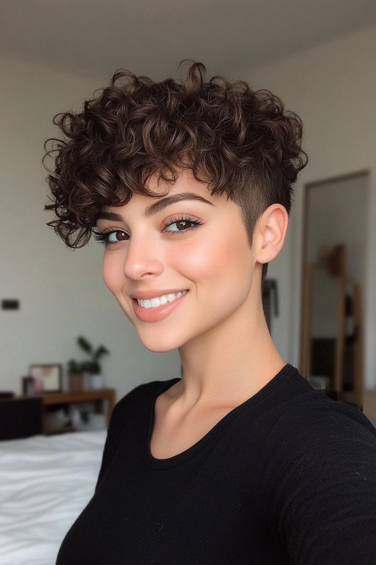 Короткие стрижки на кудрявые волосы представлены такими вариантами, как пикси, боб, боб каре, классическое каре, а также асимметричные короткие стрижки на кудрявые волосы, позволяющие игриво укладывать ваши локоны необычно и стильно.