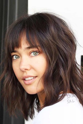 Такие стрижки на средние волосы будут выглядеть нежно и оригинально, если сочетать их с градуированной, рваной или асимметричной челкой.
