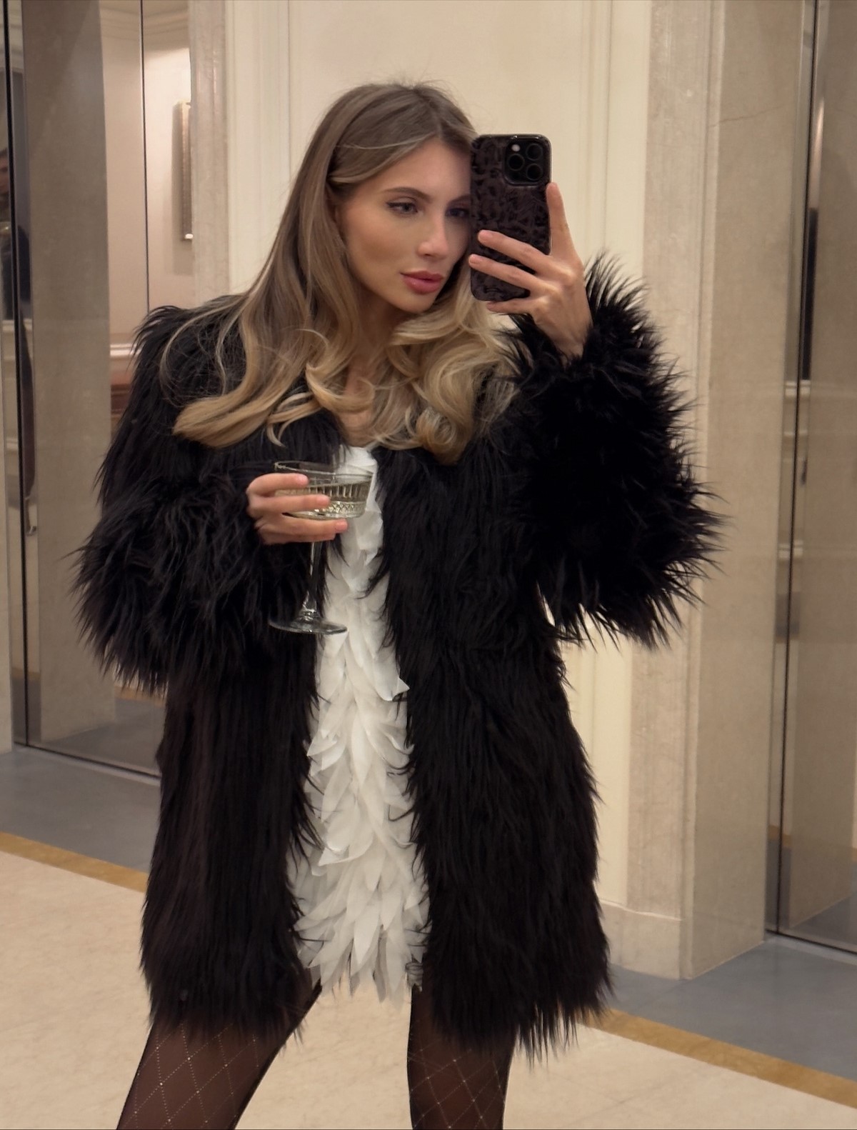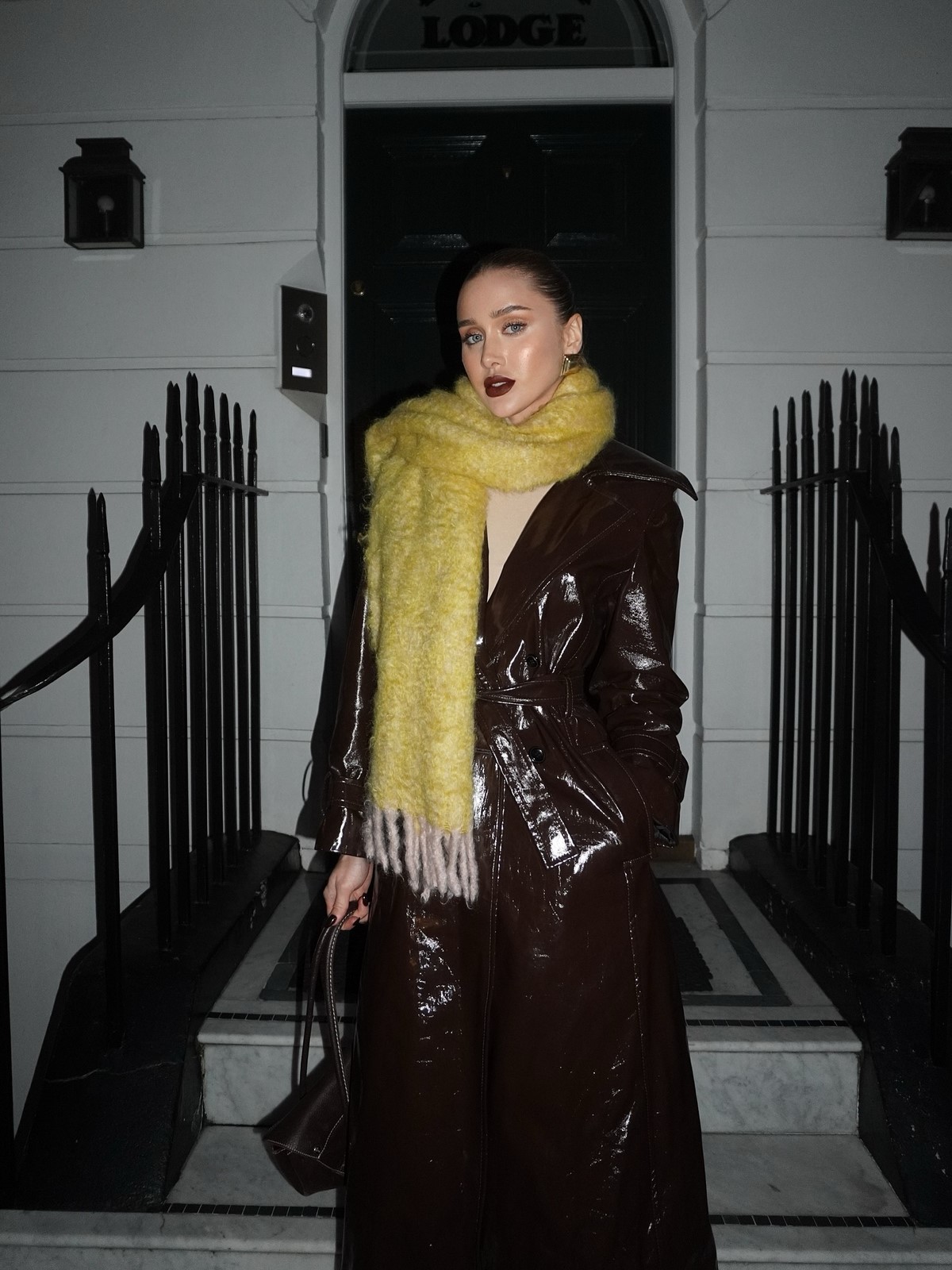 Необычные широкие рукава также приукрасили сногсшибательный вечерний лук в сезонном исполнении.
