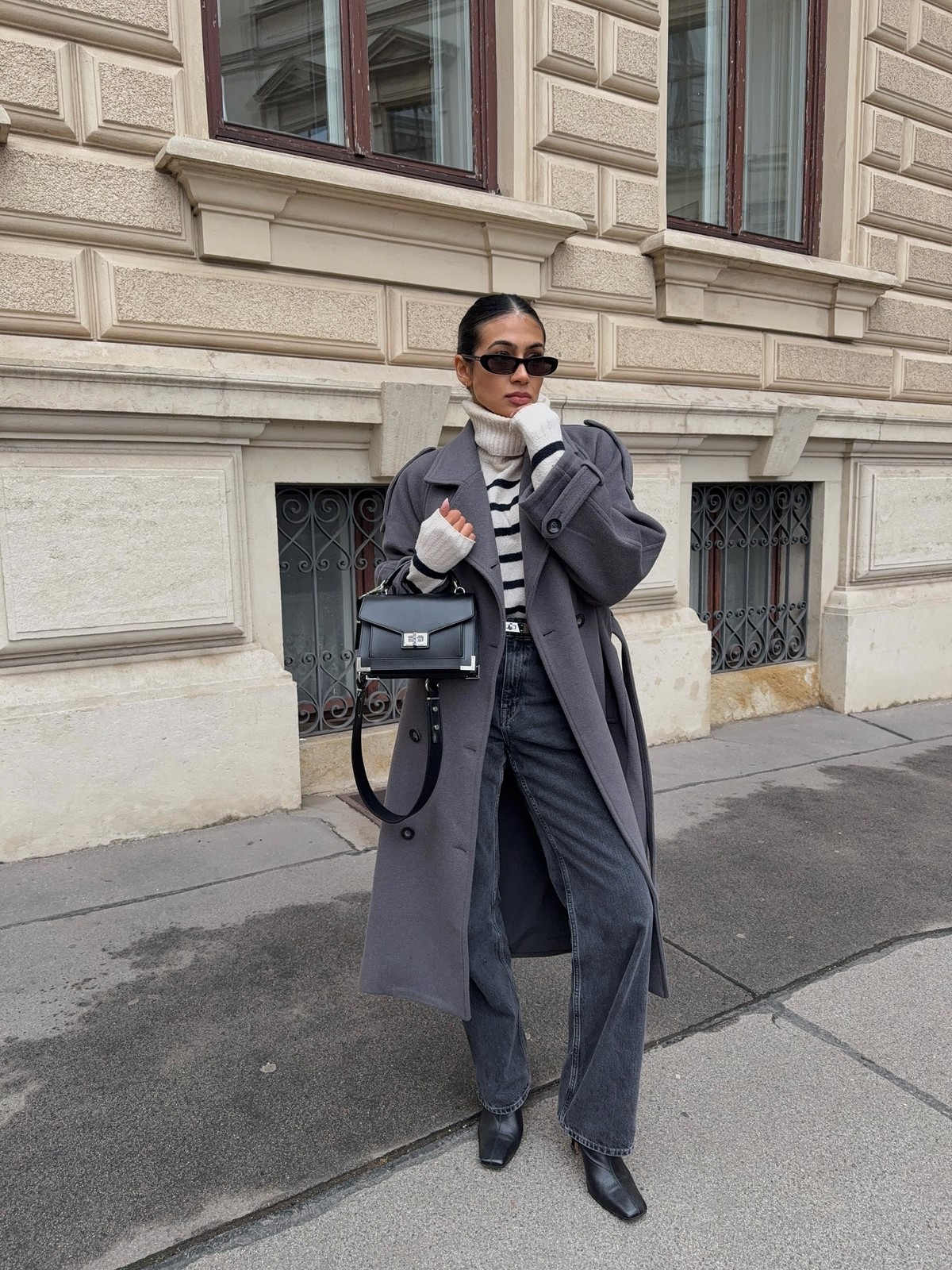 Завершить данный сет поможет элегантное пальто в красивом фасоне в коротеньком, либо миди решении с поясом, что подчеркнет талию черного, либо любого другого любимого вами цвета.