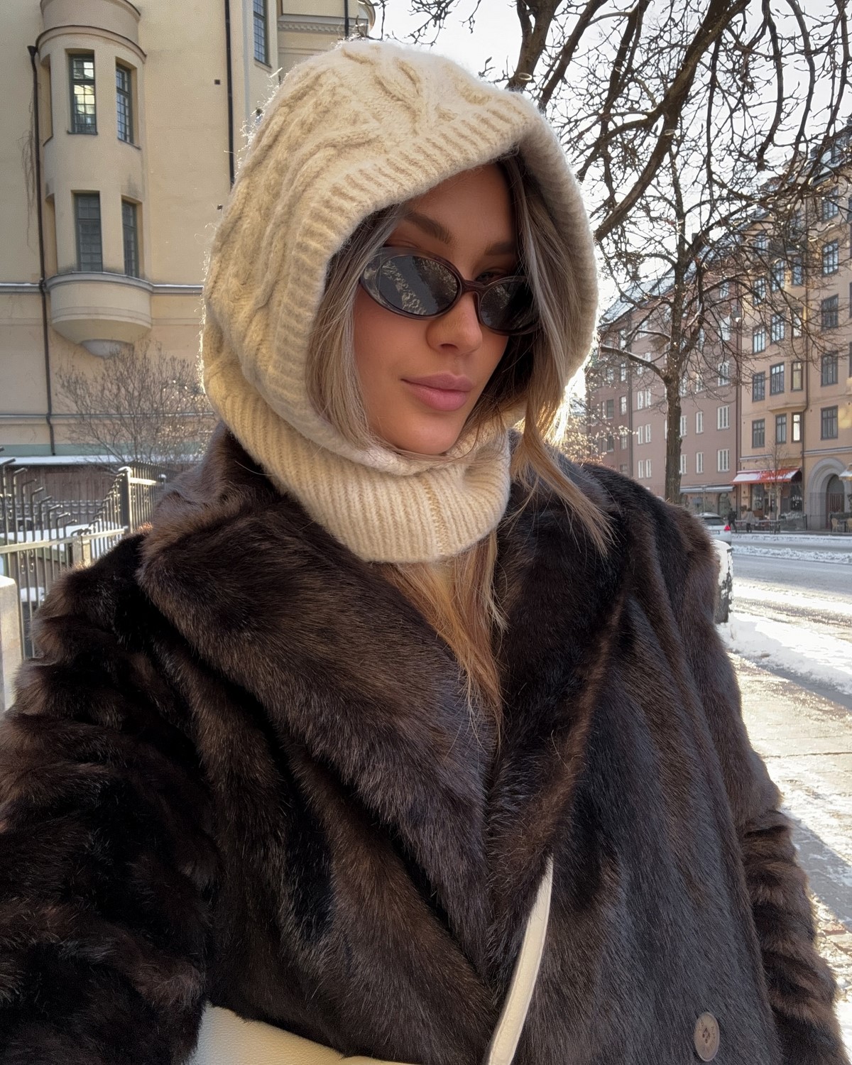 Достаточно большие по объему вязаные шапки и меховые шапки будут на пике моды в 2025-2026 году. Они не только будут иметь роль теплого элемента гардероба, но и станут украшением вашего стильного зимнего образа.